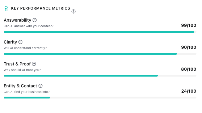 Traditional SEO optimized for search intent and keywords. AI visibility requires something different: clarity about who you are, what you do, and why you’re credible. It needs to be structured in ways that AI can actually understand and cite.